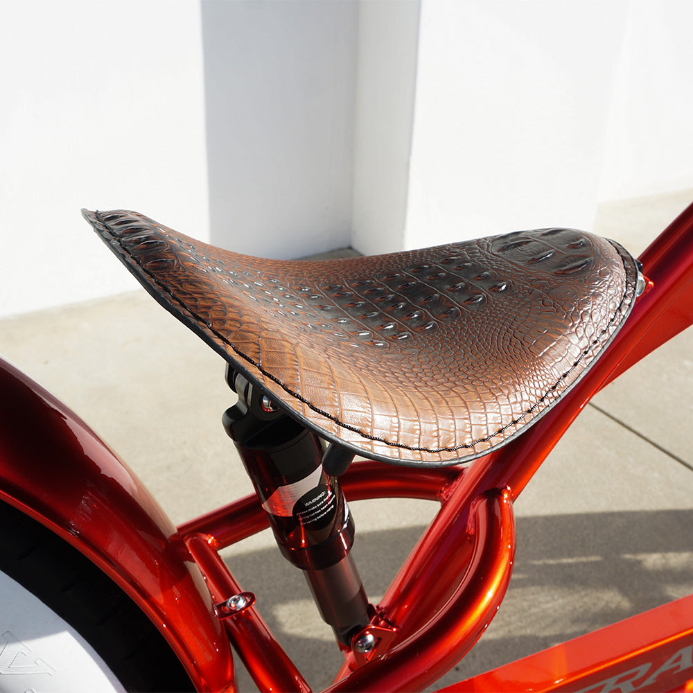 On tree-lined park paths, the Tracer Scorpion Pro DTS delivers the ultimate in riding comfort. The U-shaped cruiser handlebars let you maintain a relaxed riding posture, while the genuine leather suspension seat absorbs every bump, allowing you to fully savor leisurely moments in nature.