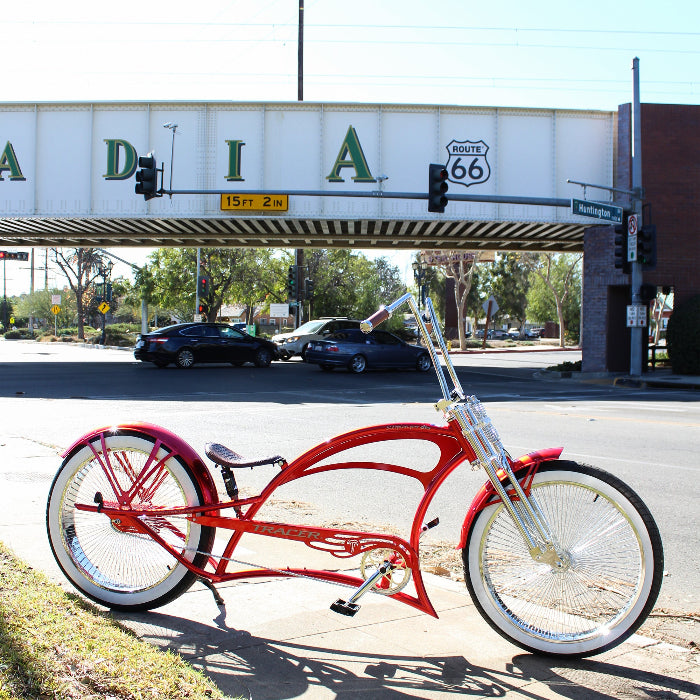 The Scorpion Stretch Cruiser Bike combines vintage chopper vibes with modern craftsmanship. With its elongated frame, low-slung profile, and aggressive stance