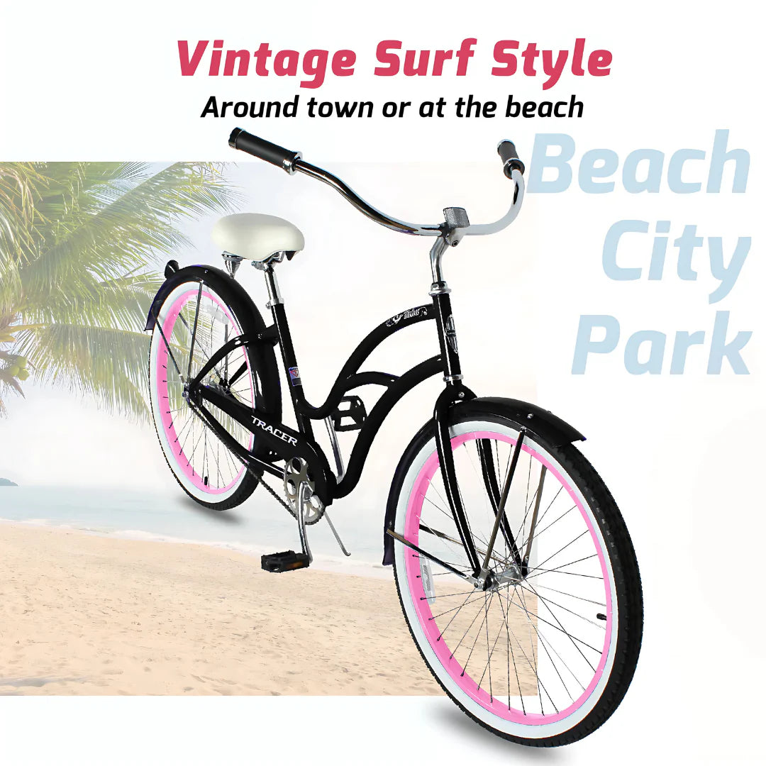 Designed for Relaxed and Easy Riding The Tracer TAHA Beach Cruiser is built for those who enjoy a smooth and stylish ride. With a reliable Hi-Ten steel frame, comfortable saddle, and sturdy tires, the TAHA ensures a comfortable journey, whether on a beach path or a city street.