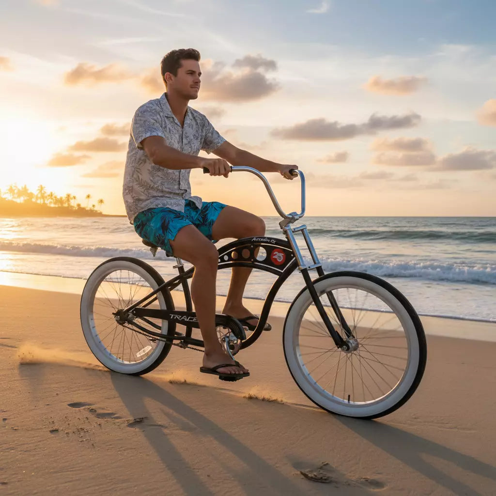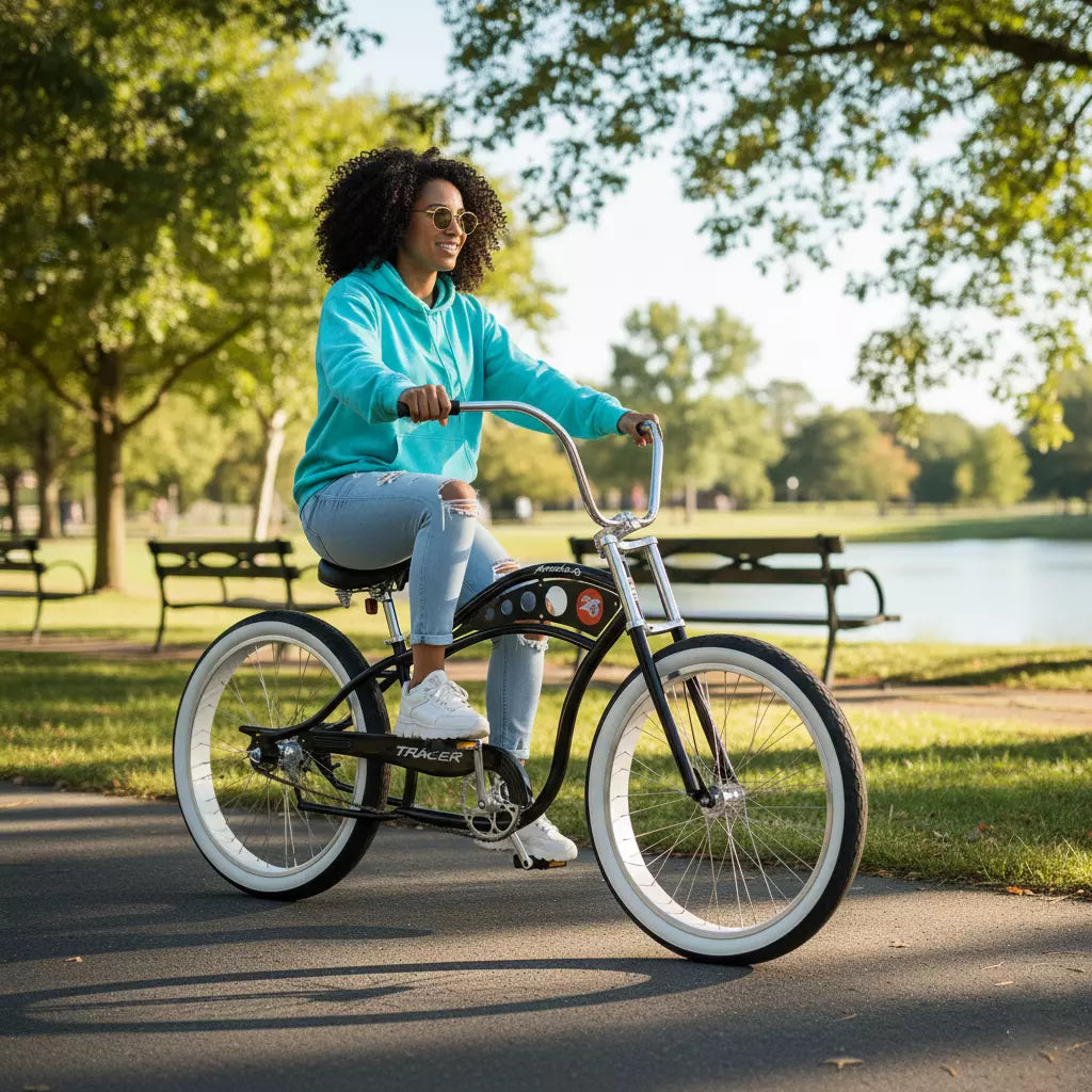 Timeless Design, Effortless Riding – The Tracer Arcadia GT combines the best of both worlds with its vintage-inspired frame, fat tires, and high-rise handlebars. Whether you're enjoying a city ride or a beachside cruise, this chopper-style bike delivers comfort, control, and style for an unmatched riding experience.