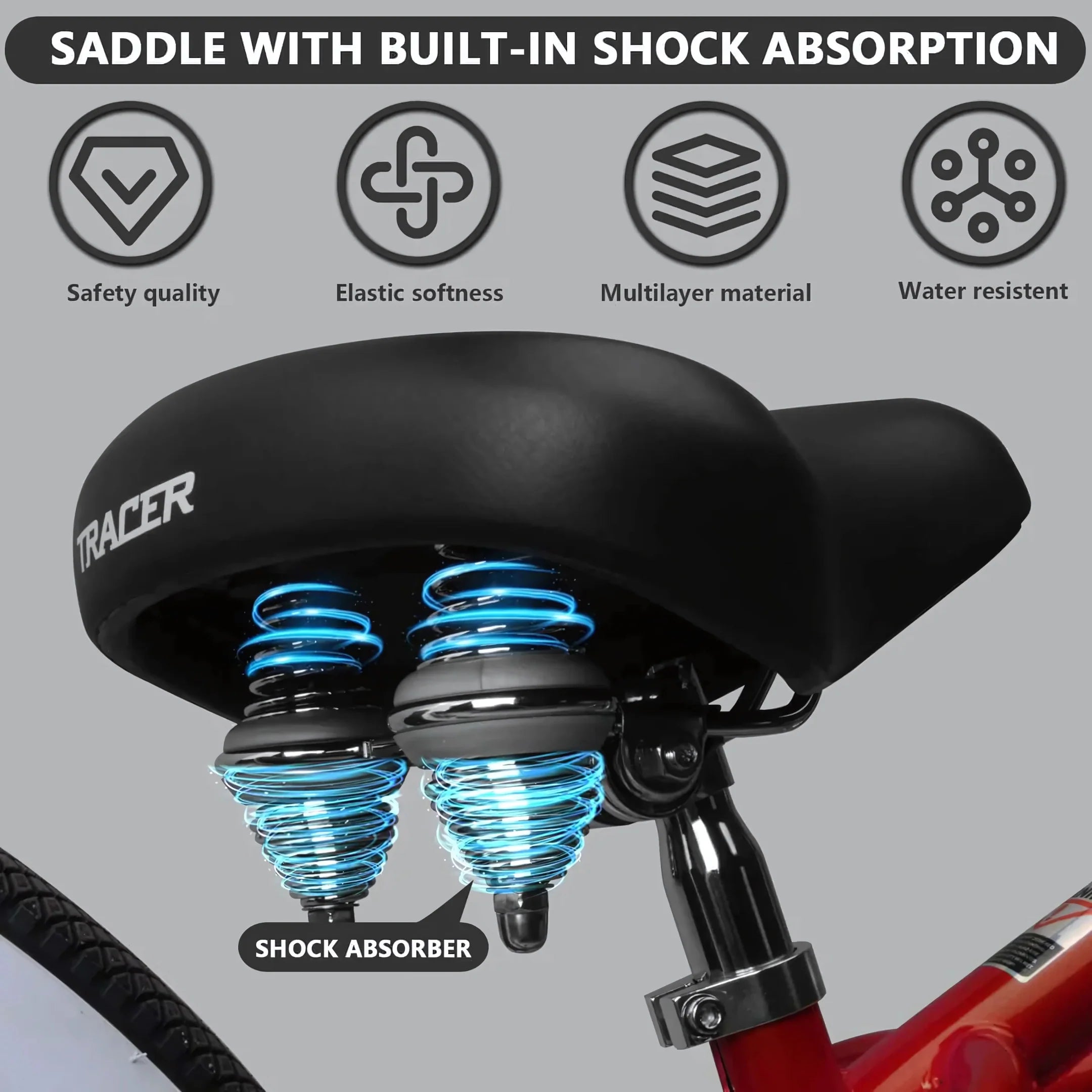 Comfort-Driven Design: The high-density PU foam saddle with shock-absorbing springs ensures a cushioned ride, even on longer journeys.